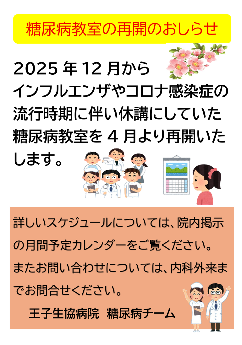 糖尿病教室再開のおしらせ