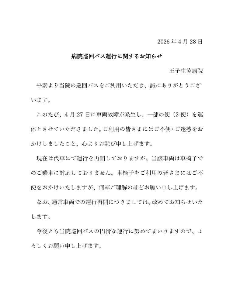 病院巡回バス運行に関するお知らせ